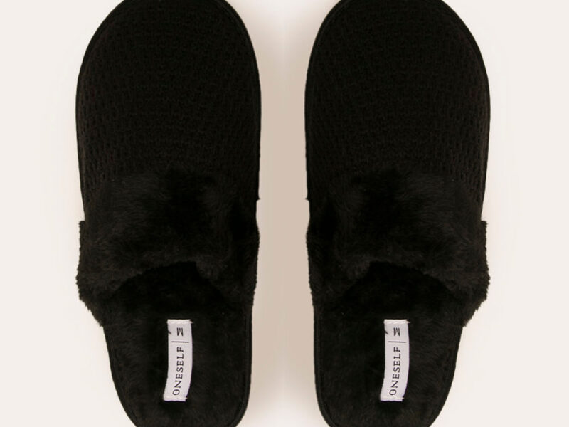 pantufa de tricô com pelo preta – 43024451355